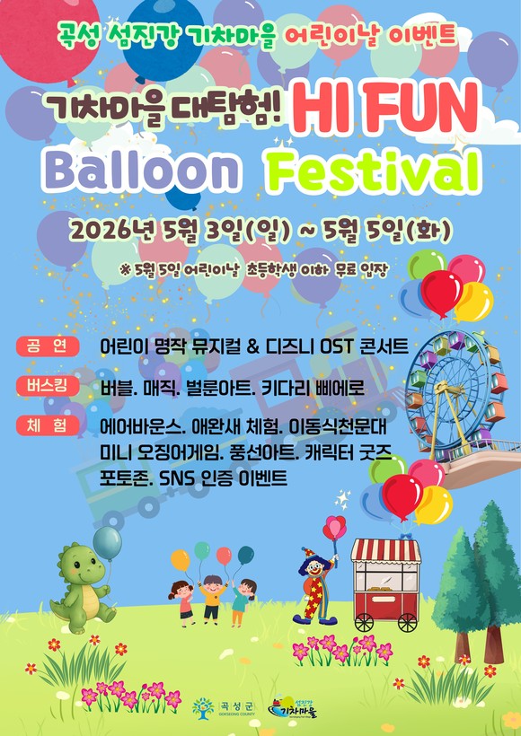 ‘기차마을 대탐험! Hi Fun Balloon Festival’은 어린이 뮤지컬, 디즈니 OST 콘서트, 매직 일루전 쇼, DJ 랜덤댄스 공연과 마술쇼, 버블쇼, 벌룬아트, 키다리 삐에로 등 참여형 버스킹 공연도 상시 운영된다.
