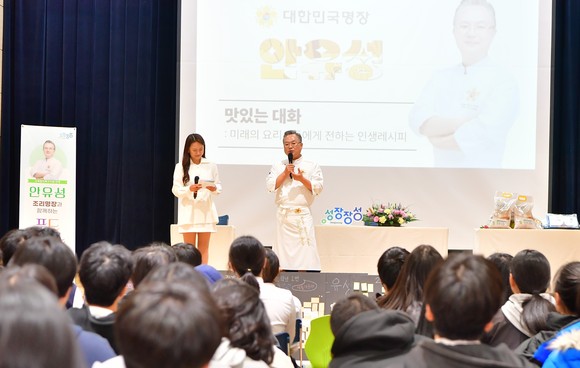 ‘미래의 요리사들에게 건네는 인생 레시피 - 맛있는 대화’라는 제목으로 열린 이번 행사에서 안유성 명장은 요리사로 성장하기까지의 과정과 ‘명장’ 칭호를 얻기까지 노력해 온 나날들에 대한 이야기를 솔직담백하게 들려줬다. 학생들의 질문에 즉석으로 답하는 시간도 가졌다.
