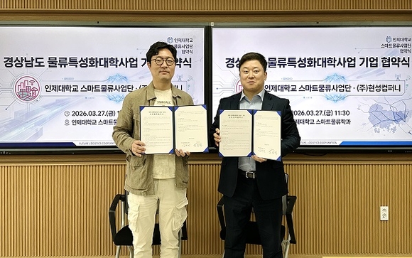 인제대학교 물류특성화대학 사업단은 27일 의약품 유통 전문기업인 ㈜현성컴퍼니와 스마트물류 인재 양성 및 연구개발 역량 강화를 위한 업무협약을 체결했다고 밝혔다.