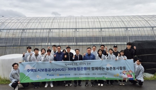 NH농협은행이 9일 주택도시보증공사(HUG)와 부산 강서구 도도본리마을 토마토 농가에서 농촌일손돕기 활동을 펼쳤다고 밝혔다.