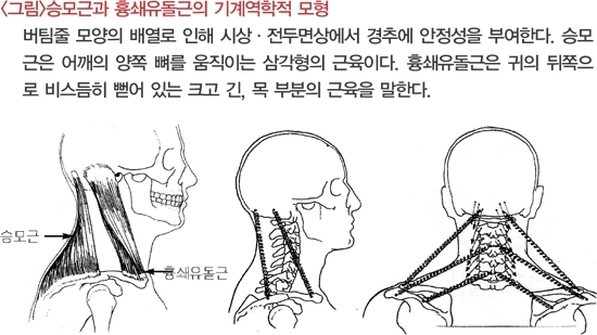 목은 우리의 몸 중에서 가장 움직임이 많은 부분이다. 우리는 목을 1시간에 600회 이상이나 움직이게 된다. 이처럼 목은 수축과 이완을 쉬지 않고 계속하게 되는데, 정상적인 상태에서는 통증이나 피로를 느끼지 않는다. 그러나 나쁜 자세로 오래 일을 하거나 운동을 지속하면 정상적인 수축·이완의 리듬이 깨지고, 중력을 받는 방향도 나빠져서 경추(頸椎:목등뼈, 목의 척추)의 곡선에도 나쁜 영향을 주게 된다.