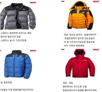 누리꾼들 사이에서 ‘노스페이스 계급도’ 사진이 화제다. ‘노스페이스’는 유명 등산복 브랜드.