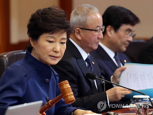 ▲박근혜 대통령이 13일 오전 청와대에서 열린 국무회의에서 개회하고 있다.(사진=연합뉴스)
