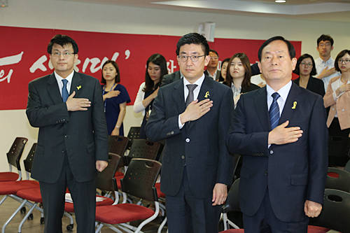 ▲19일 오전 서울 여의도 새누리당 당사 강당에서 윤상현 사무총장이 주재하는 사무처당직자 월례조회가 열렸다.(사진=새누리당)