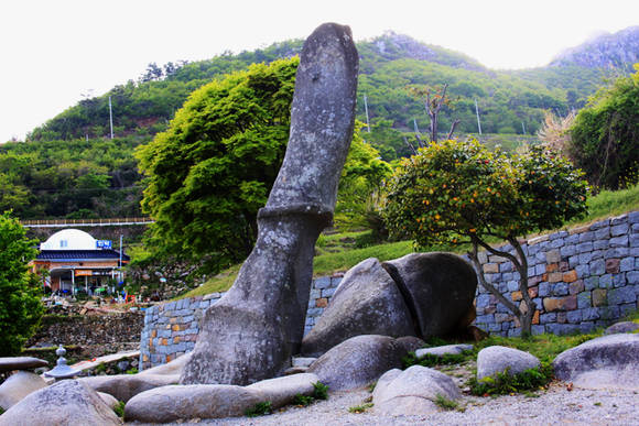 다랭이 논을 따라 마을로 내려가면 입구에 자연암석 돌로 생긴 커다란 한 쌍의 암수바위가 있다. 높이 5.9m의 숫바위와 4.9m의 암바위는 전국에서도 아름답기로 정평이 나 있으며 간절히 소원하면 아들을 낳는다고 해서 득남을 원하는 사람들의 발길이 잦다.