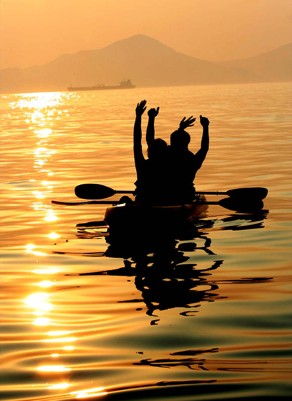 ▲저녁노을이 환상적인 사촌해수욕장 남해카약체험(www.kayak.kr 문의 010-6595-0619).