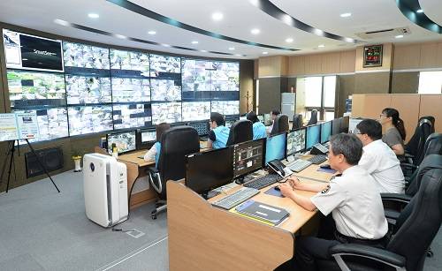 거창군청 4층에 위치한 통합관제센터는 방범용 152대, 어린이보호 31대, 주정차단속 32대, 도로상황 7대, 산불감시 2대, 재난감시 13대, 초등학교 17곳의 76대 등 총 313대의 CCTV가 거창군 관제를 위해 운영된다.