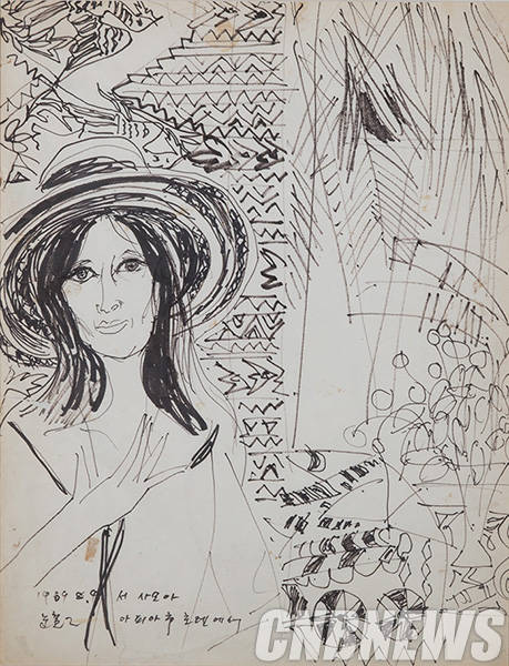 ▲‘아피아시 호텔에서(At a Hotel in Apia)’, 종이에 사인펜, 35×27cm, 1969. (제공=서울시립미술관)