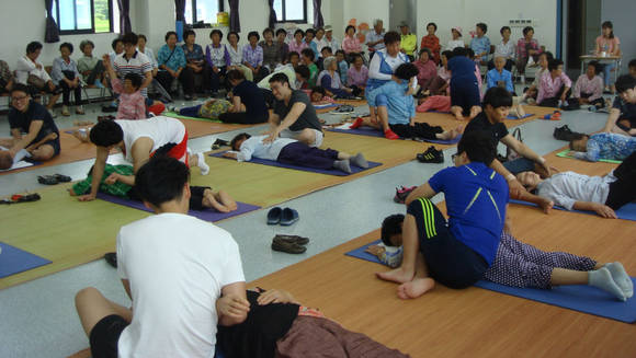 고된 농사일에 허리와 팔다리 통증에 시달려 온 주민들도 “우리들에게 맞춤형 치유 봉사활동이다”고 만족해하면서 “면단위 보건소에서 정기적으로 마사지와 자세교정 프로그램을 도입하면 많은 도움이 될 것”이라고 말했다.