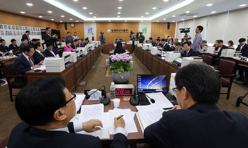 이동필 농림축산식품부 장관이 7일 정부세종청사 농식품부에서 열린 국회 농림축산식품해양수산위 국감에서 여야 위원들의 질의에 답하고 있다. (사진 = 연합뉴스)