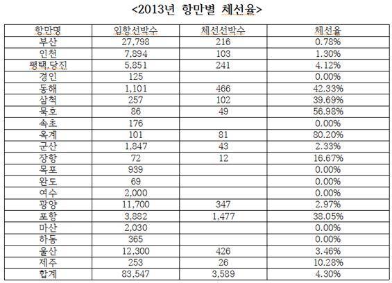 부산지역의 경우 항만투자 예산 대비 집행률은 2011년 80.4%, 2012년 76.3%, 2013년 102.7%로 과잉투자된 반면 강원지역은 2011년 79.8%, 2012년 78.8%, 2013년 43%, 올해 9월말 현재 9%에 머물고 있다.