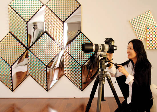 금과 자개를 이용해 볼록한 금빛 큐브 형태를 만드는 채은미 작가가 소아암 돕기 후원전에 참여한다.