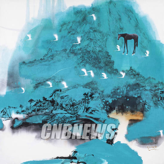 ▲신무릉도원도, 천에 먹·아크릴, 117x73cm, 2014
