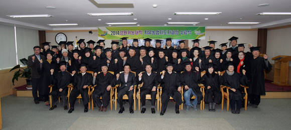 강원도농업기술원은 15일 오전 농업기술원 대회의실에서 '2014년도 강원 귀농대학 및 치유농업지도자 과정' 수료식을 개최했다.