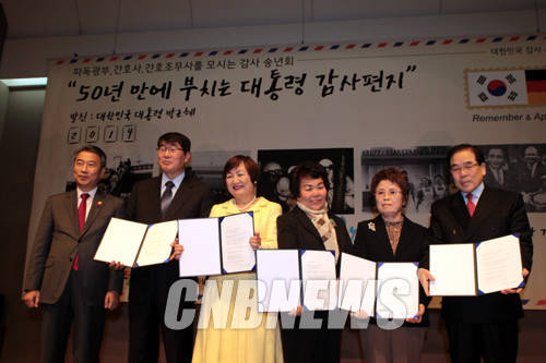 고창원 파독산업전사세계총연합회장은 “지난 3월 박근혜 대통령이 독일에 국빈방문해 손을 잡아주며 반세기 노고를 잊지 않았던 데 이어 이런 감사편지를 전달해줘 고마움을 전한다”고 화답했다.
