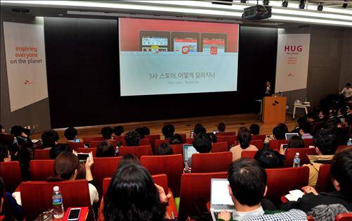 ▲20일 오후 경기도 판교 SK플래닛 수펙스홀에서 열린 앱마켓 통합 프로젝트 개발자설명회(사진: 연합뉴스)