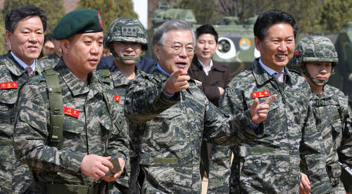 ▲강화도 해병대 제2사단 상장대대를 방문한 문재인 대표. (인천=연합뉴스)