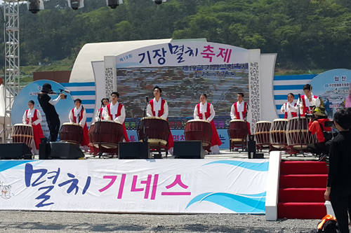 ▲제19회 기장멸치축제 주무대에서 펼쳐진 하람예술단이 국악공연을 하고 있다