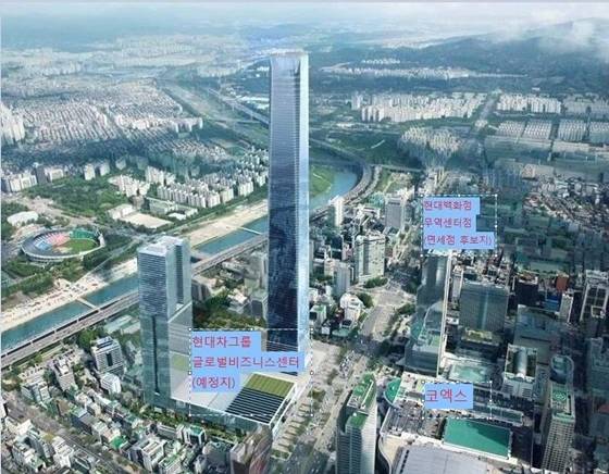 지난해 9월 한전으로부터 10조5500억원에 7만9342㎡규모의 한전 본사 부지를 사들인 현대차그룹은 연면적 96만㎡에 전시컨벤션센터와 호텔 등으로 쓰일 62층 건물과 통합사옥(글로벌 비즈니스 센터)으로 사용할 115층(최고높이 571m) 건물을 지을 계획이다.