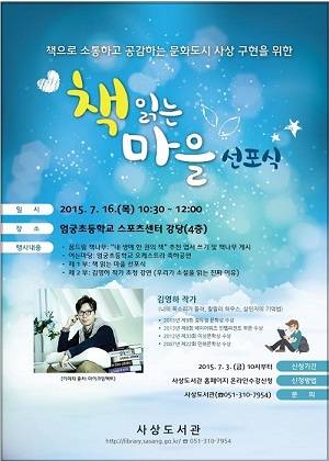 부산 사상구(구청장 송숙희)는 오는 16일 엄궁초등학교 스포츠센터 강당에서 200여 명의 주민이 참석한 가운데 ‘책 읽는 마을’ 선포식을 갖는다고 밝혔다.