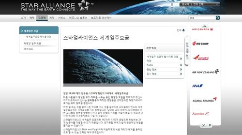 ▲세계일주요금 관련 자세한 내용이 소개된 스타얼라이언스의 홈페이지. (사진=스타얼라이언스 홈페이지 캡쳐)