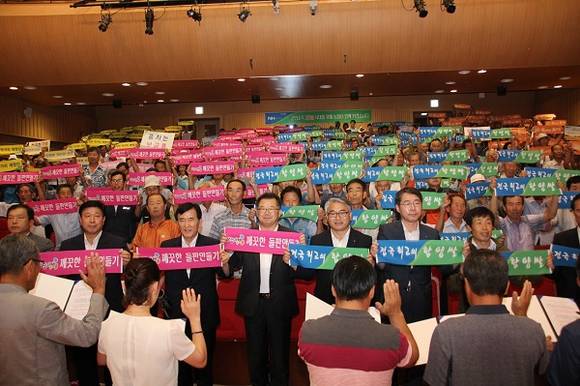 함양의 명품쌀 브랜드로 자리잡고 있는 고품질 함양쌀의 고부가가치화를 위해 함양농협(조합장 박상대)은 지난 21일 문화예술회관 대공연장에서 임창호 함양군수, 신성범 국회의원, 황태진 군의회의장 및 군의원, NH농협 함양군지부 여일구 지부장, 함양군 농업기술센터 정재호 소장, 국립농산물 품질관리원 장세흥 소장 등 관계자들과 농업인 500여명이 참석한 가운데 친환경 고품질함양쌀 생산교육 및 전진대회를 개최했다.