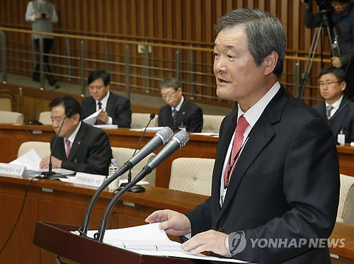 ▲고정식 전 한국광물자원공사 사장이 지난 2월 13일 오전 국회에서 열린 정부 및 공공기관 등의 해외자원개발 진상규명을 위한 국정조사 특별위원회 전체회의에서 기관보고를 하고 있다.(사진=연합뉴스)