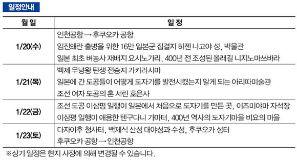 한일 수교 50년, 한일 교류 2000년을 맞는 일본 탐방은 내년 1월 20일(수)부터 23일(토)까지 3박4일간 진행된다. 30명 내외로 꾸려질 탐방단 신청 마감은 12월 19일(토)까지다.