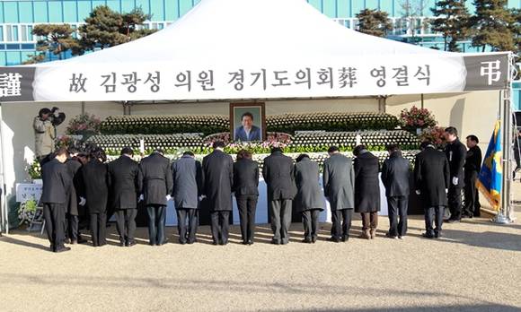 장의위원장인 김유임 의장 직무대리는 영결사에서 “당신의 깊은 사랑과 끝없는 용서가 만든 소년 같은 미소, 따뜻한 보살핌의 흔적, 정의로운 삶의 기록들이 가족들과 경기도의원, 그리고 경기도민의 마음에 꺼지지 않은 등불이 될 것”이라며 추모했다.