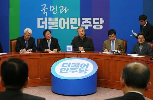 ▲더불어민주당 김종인 비상대책위원장을 비롯한 지도부가 7일 오후 국회에서 열린 더불어민주당 북한 미사일 발사 관련 비상대책위원회에서 한민구 국방부 장관의 현황보고를 듣고 있다. (사진=연합뉴스)