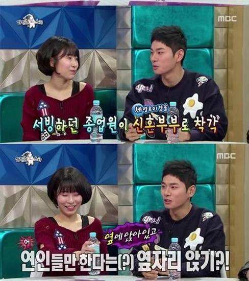 이어 그는 “친해진 이후 횟집을 갔다. 그런데 종업원이 우리를 신혼부부로 알더라”면서 “그런데 점점 서비스를 주더라. 그것에 눈이 멀어 갑자기 옆에 같이 앉게 되고 없는 2세까지 만들었다”고 말해 웃음을 자아냈다.