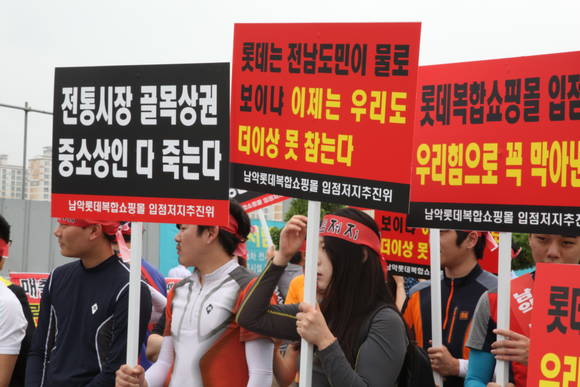 이 같이 남악에 들어서는 대형복합쇼핑몰과 초대형마트 입점이 행정구역은 다르지만 목포 지역의 상권과 지역경제에 막대한 피해를 주는 것은 자명한 사실이어서 상인들을 포함한 지역의 시민단체가 힘을 합쳐 입점 저지에 나섰다.