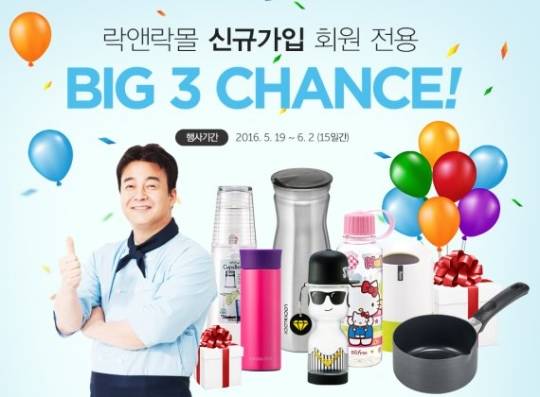 락앤락이 온라인 쇼핑몰 락앤락몰에서 신규회원을 대상으로 한 ‘빅 3 찬스(Big 3 Chance)’ 이벤트를 실시한다고 19일 밝혔다.