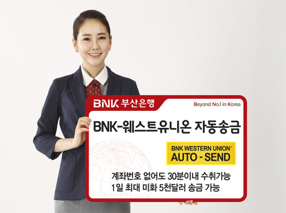 BNK금융그룹(회장 성세환) 부산은행이 글로벌 송금회사인 '웨스턴유니온(WESTERN UNION)'과 업무제휴를 통해 해외 즉시 자동송금인 'BNK-웨스턴유니온 AUTO-SEND(자동송금)' 서비스를 실시한다.