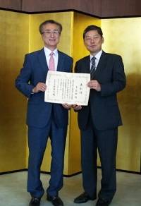 이날 모리모토 총영사로부터 상장을 전달받은 이 전 총장은 한-일 양국의 대학 간 교수, 학생 및 일본계 기업인들과의 교류에 기여하고, 창원대학교 일어일문학과를 통한 전국 대학생 일본어 스피치 대회 등의 지원활동으로 양국 친선에 공헌했다.