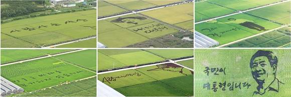 한편 지난 6월17~18일, 전남 장성 남면 시목마을 들녘에서는 경남 봉하마을과 더불어 ‘노무현캐릭터’논을 조성하는 모심기가 열렸다.