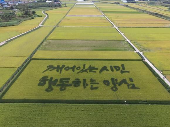 내달 3일 오후4시부터 김대중 노무현 벼글씨가 새겨진 장성 시목마을 들녘에서 ‘2016논두렁음악회’가 열린다.