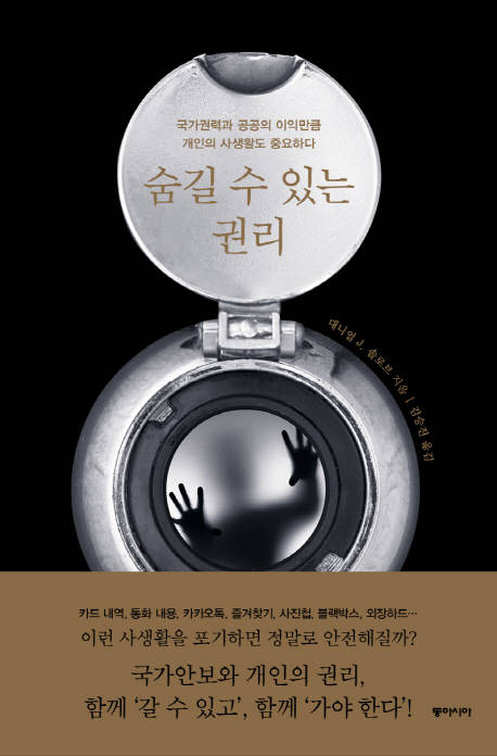 ‘숨길 수 있는 권리’에서 저자 대니얼 J. 솔로브는 ‘안보 대 사생활’ 구도의 논쟁을 분석한다. 일반적으로 사생활은 숨기고 싶은 것, 비밀, 지극히 개인적인 것이라고들 생각하지만, 많은 국가 안보 정책들이 이런 생각을 토대로 만들어진다. 그간 안보강화론자들이 내세워온 ‘국가안보를 위해서라면 개인의 사생활은 희생돼야 마땅하다’는 논리에 이성적으로 반박하고 합리적인 해결 방안을 제시하고자, 저자는 ‘사생활=비밀’이란 패러다임을 벗어나 사생활도 ‘사회적 가치’로 봐야 한다고 주장한다.