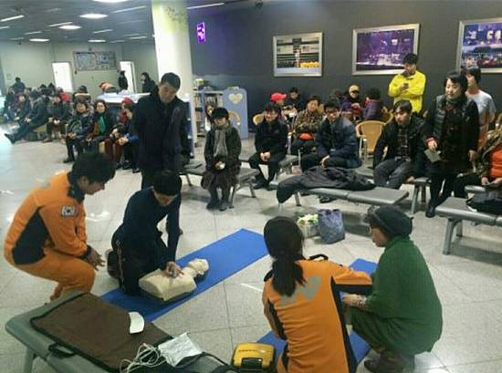 ▲고양도시관리공사 고양체육관에서 진행하고 있는 심폐소생술 교육 장면(사진= 고양도시관리공사)