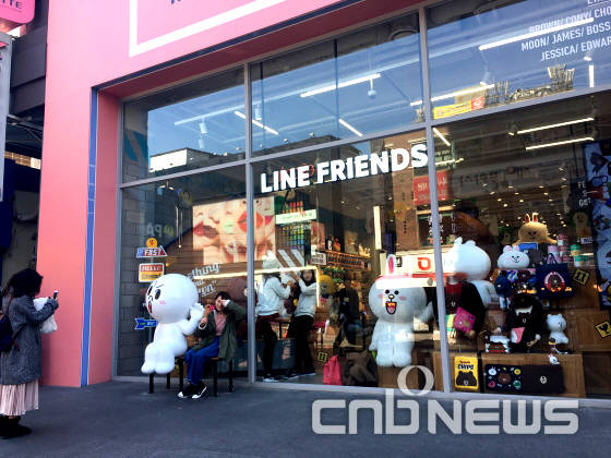 ▲지난 7일 이화여대 앞 라인프렌즈샵에서 기념사진을 촬영하고 있는 싼커. (사진=김유림 기자)