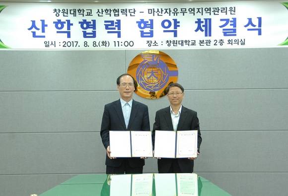 창원대는 대학본부 상황실에서 창원대 최해범 총장과 동성식 기획처장, 윤병일 사무국장, 박경훈 산학협력단장, 대학 취업 담당자, 산업통상자원부 마산자유무역지역관리원 류금렬 원장 등이 참석한 가운데 '창원대학교-마산자유무역지역관리원 산학협력 MOU' 를 체결했다고 9일 밝혔다.