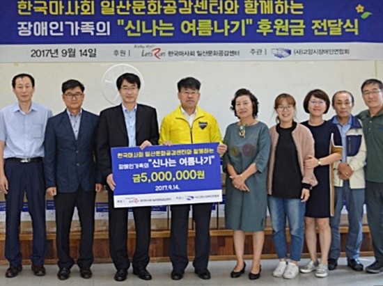 한국마사회 일산문화공감센터는 지난 8월 18일 일산사무실에서 '2017년 일산문화공감센터 기부심의위원회'를 개최했다. 이날 지역 12단체에 지정기부금 총 7000만원을 지원하기로 결정한 바 있다. 센터는 앞으로도 대화노인종합복지관, 새마을회 등 4개 단체 및 행사장에 방문해 기부금 지원 전달식을 개최할 예정이다.