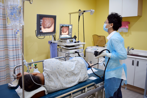 ▲힘내라병원 소화클리닉 변창규 원장이 대장내시경을 시연하고 있는 모습. (사진=힘내라병원)