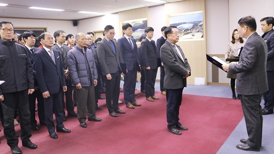 ▲임태모 고양도시관리공사 사장이 105명의 비정규직을 정규직으로 전환 임명하고 있다(사진= 고양도시관리공사)