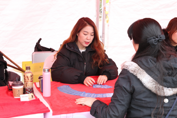 ▲렛츠런파크 부경 신년행사에서 한 고객이 타로운세를 보고 있다.