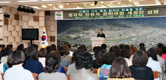 이번 정규직 전환 대상자는 연중 9개월 이상 계속되는 업무로 향후 2년 이상 지속할 것으로 예상하는 업무 종사자로서, 고용노동부에서 제시한 비대상자를 제외한 전원을 선정한 인원으로, 도내 군부에서 현재까지 가장 많은 인원을 전환했다.