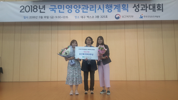 또한, 지난 18일 열린 2018년 국민영양관리시행계획 성과대회에서도 우수기관으로 선정되어 보건복지부 장관상을 수상했다.