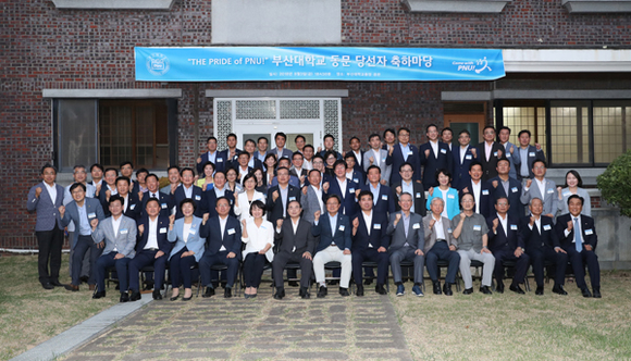 부산대학교와 부산대학교 총동문회는 지난 3일 저녁 부산 금정구 온천동에 있는 총장 공관 뜰에서 지난 6.13지방선거 및 국회의원 보궐선거에서 당선된 동문들을 초청해 축하와 교류·협력을 위한 '부산대학교 동문 당선자 축하마당' 행사를 개최했다고 6일 밝혔다.