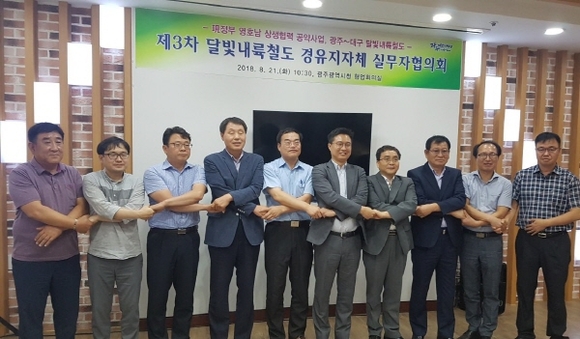 달빛내륙철도(광주〜대구)건설사업의 조기 건설을 위해 노선 경유지 10개 지자체 담당 실무자 등 관계자들이 현안 논의를 위해 21일 광주시청에서 제3차 실무자협의회를 했다고 밝혔다.