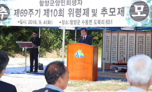 경남 함양군은 4일 수동면 도북리 한국전쟁 양민 희생자 합동묘지에서 ‘함양군 양민 희생자 제69주기 제10회 위령제’를 엄숙하게 거행했다.